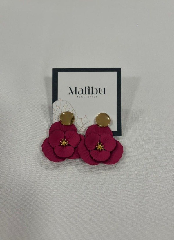 Aros en tono fucsia con toques dorado