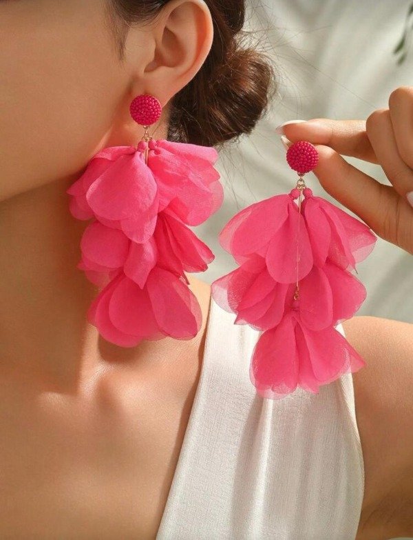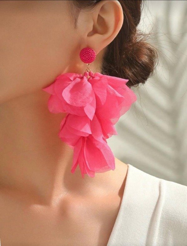 Hermosos y livianos aros fucsias de tela con delicado tope. Fino y con mucha presecencia