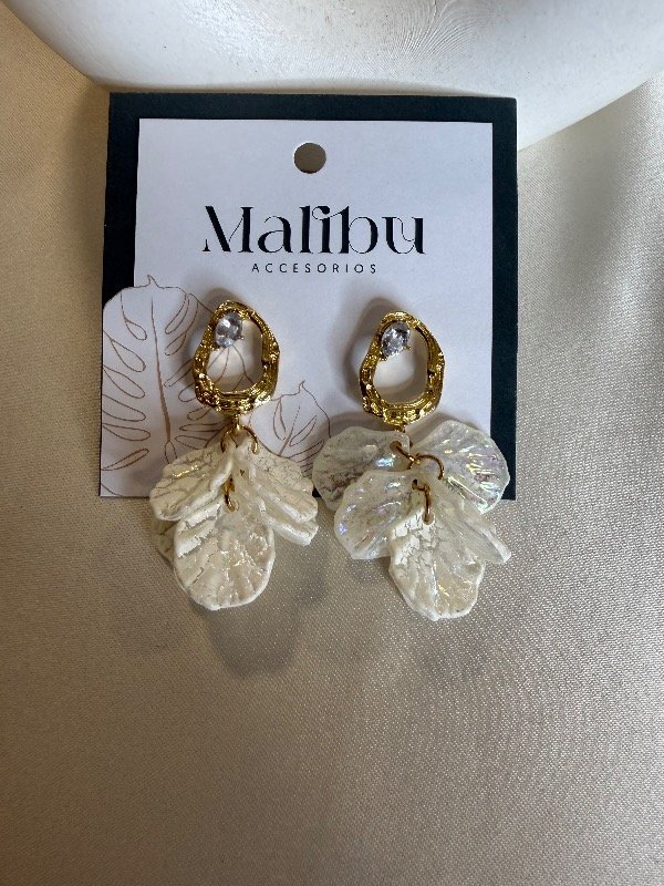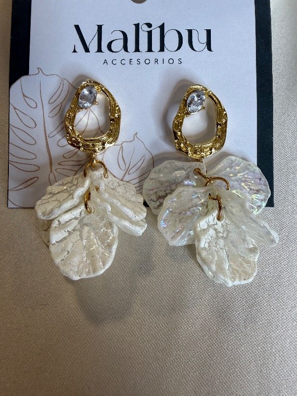 Aros importados dorados con flores en blanco