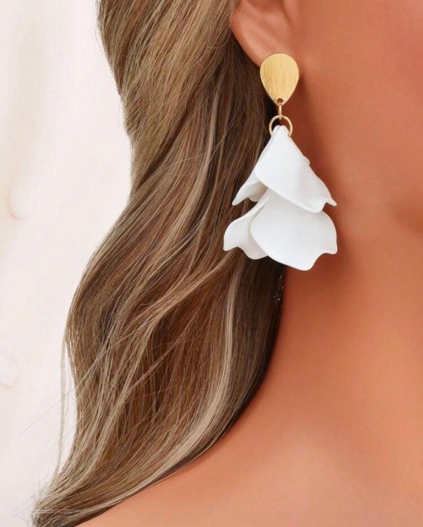 Hermosos aros de pétalos blancos con engarce dorado. Livianos y versátiles