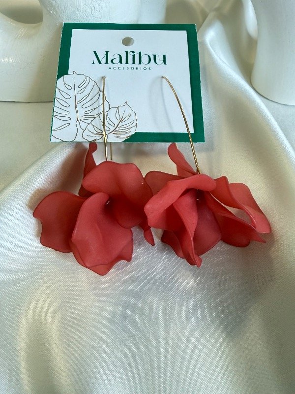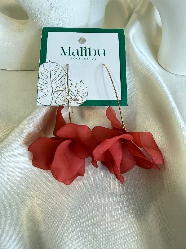 Aros colgantes livianos en dorado con la flor en rojo