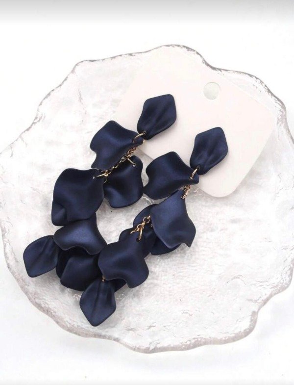 Extraordinarios aros color azul noche con cascada de pétalos