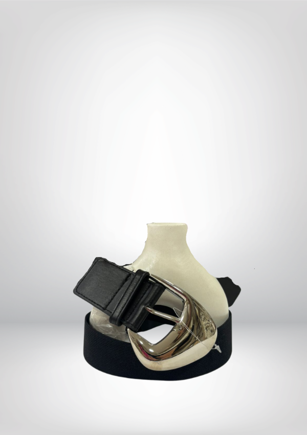 Cinto negro con hebilla plateada, elastizado