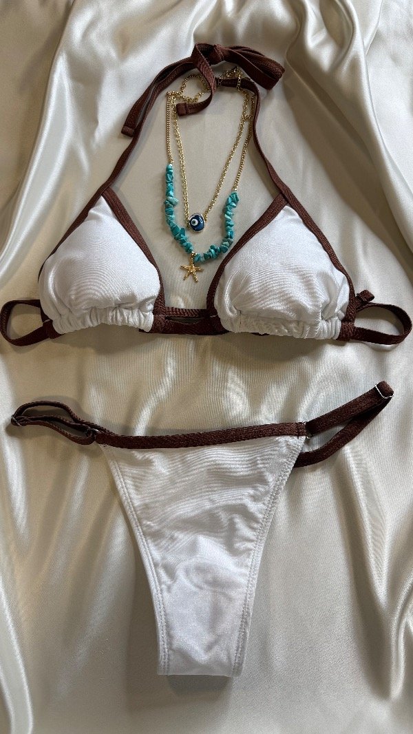bikini blanca con marrón